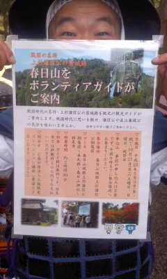 十「これから散策にもってこいの時期…。今年もボランティアガイドさまによるご案内が始まります。明日から10月までの土・日曜、祝日の9時、謙信公銅像前集合です。現地解説が広範囲になった「謙信公ゆかりの地をめぐるリレー講演会」も…。色々な機会を利用され、より楽しんでいただきたいですっ!」
