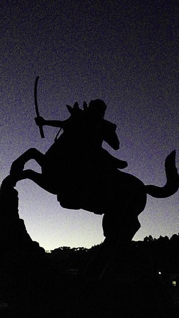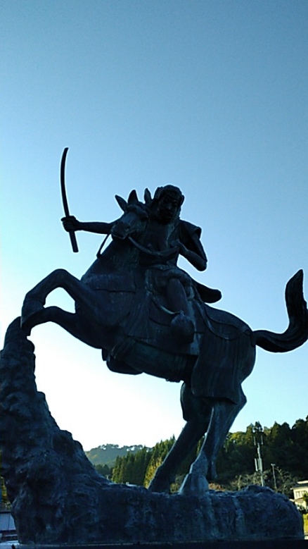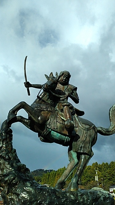 ※春日山の麓、無料の企画展゛謙信公と春日山城展゛絶賛開催中の我らが本陣!上越市埋蔵文化財センター前の謙信公銅像!昨日は、雨が残る朝には虹が、日中はありがたき青い空、そして陽が沈み幻想的に…。ガラ携では伝わりませぬ!銅像見て欲しいです!どうぞ~(汗)!十吾郎(礼)