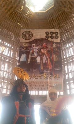 十「この年末年始、ふるさとに里帰りで、遠方からスキーや温泉、地酒や食を楽しみに、はたまた、お仕事で、当市に足を運ばれていたみなさまが去る(さる)と、これまた寂しくなりまするが、お土産物はどうなさりましたか〜!また、お世話になっている旅の方に贈り物をしたいと考えている地元のみなさんにも情報です。本日が最終日、上越ICほど近く、上越観光物産センター¨ふるさとコーナーで恒例の初売りが行われています。あっ!大きな館の入り口には、我ら武将隊のキャラクター缶バッジが¨ガチャガチャでお楽しみいただけまするよ〜(汗)」