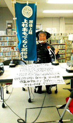 「我らがふるさと越後は新潟県上越市では、本日が終業式の学舎さんが多いようです。明日からは冬休み、拙者も何しようかな〜!あっ、なりきり謙信公の甲冑体験も楽しめる無料の企画展¨謙信公と春日山城展¨絶賛開催中の我らが本陣、上越市埋蔵文化財センターはこの28日(水)まで開館しています。申年の今年も最後まで去らずに元気な笑顔でお出迎えさせていただきまする〜」