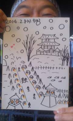 ※何のオチ〜もありませぬが、絵は上手な画伯、いやいや、我ら武将隊、今年最後の「おもてなし演武」でバロー上越モールさまに「♪ぽっぽ〜」画像再利用で「エコ」な〜(笑)十吾郎(礼)