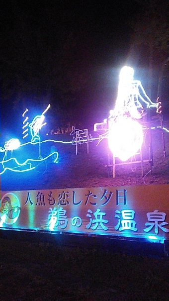 「この時期ならではのイルミネーション!我らがふるさと越後は新潟県上越市!人魚伝説の地!大潟区は゛鵜の浜温泉街に恒例の灯りが点っています。今秋は、小学生さん等による壁画が誕生!まさに、地域の日帰り温泉施設です~」