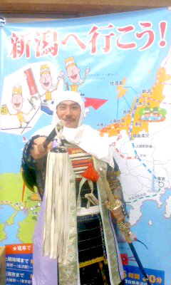 十「そして、二日間¨大阪駅にて大開催は¨うまさぎっしり新潟展〜!此度は、♪び〜ゅんと北陸新幹線で¨糸魚川市(駅)、上越・妙高市(駅)、日本海を渡って佐渡市、更には、謙信公が15才で初陣を飾った栃尾城を有す長岡市の観光展…。物産展では、謙信公が愛した日本酒、戦場に携帯させたと言われる¨笹だんご、お餅、米菓など越後を代表する定番に加え、雪下にんじんジュース、地酒ゼリー、日ノ本発祥の地ビール等も…」