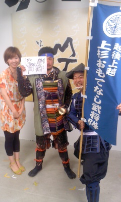 我らが兼続様にお仕えし、地元「ケーブルテレビ・JCV」さまの情報番組「MJいんふぉめーしょん」の収録にて、24日(土)「大物産市in謙信公祭・武将隊ステージ」の告知をさせていただきました〜十吾郎(礼)