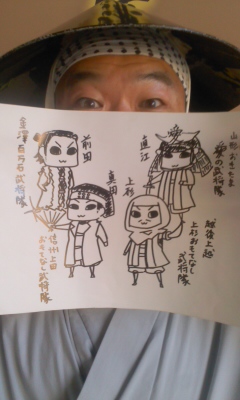 「来ていただく三つの武将隊さまの絵、お上手にござりまする〜」