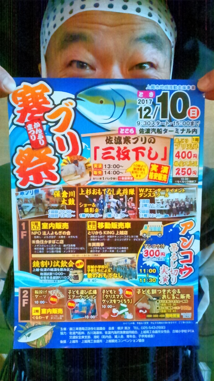 ※年明け2月まで点検のため運休となっていますが(年末年始は就航)、佐渡島・小木港への玄関口、直江津港で盛大に行われました゛寒ブリ祭!終焉してしまい、いよいよ冬本番です!