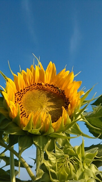 「さておき、本日は、ひまわりの日!1977年のきょう、日ノ本初の静止気象衛星゛ひまわり1号が打ち上げられたそうです…。ひまわり。我らが越後は新潟県の花、チューリップと並んで拙者は、ひまわりが大好きです!ふるさと上越市の魅力を、元気な笑顔を、これからも届けて参りまする。よろしくお願いいたしまする~」