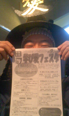 先ずは本日、「上越市教育コラボ2013 学び愛フェスタ」開催ですっ!お子たちの学校教育はもとより、社会教育、生涯学習に至る各種発表や体験、楽しき催しなどが四つの会場で盛りだくさん〜とのこと…。