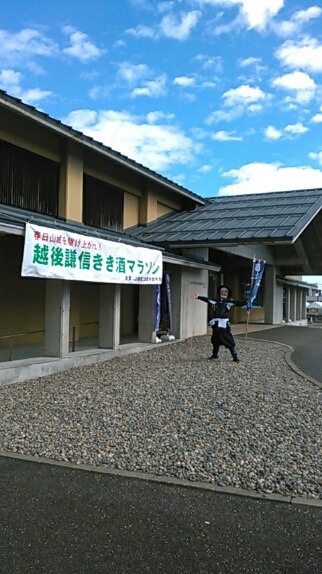 「第4回目にして嬉しきお天気での大開催となりました゛越後謙信きき酒マラソン!先月の゛越後・謙信SAKEまつりのように地酒が並びました!いいにおいのスキー汁も…。日本スキー発祥のふるさとを応援するような具沢山な味噌味です!さつまいもは欠かせませぬ!!あっ、拙者も毎年、欠かせない存在となるよう大きな声と喋りを磨きまする~(汗)!」
