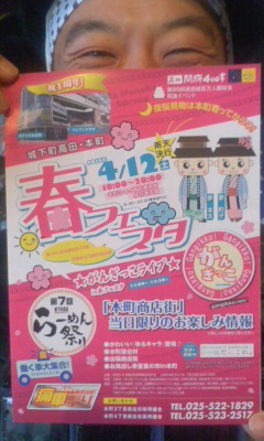 「極楽橋」のたもと、上越のうんまぃもん、お土産ものいっぱ〜いの物産展がありまする「第89回 高田城百万人観桜会」…。お楽しみの一つ「さくらステージ」、明日4時からは、今年度も毎月第四金曜お昼の生放送「すまいるカフェ・武将れでぃお」でお世話になりまする、FM-Jさまの「お花見ラジオ」〜