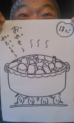 「愛で楽し、食べてあったか、ほっとする、囲む笑顔に、お鍋の季節…。 どんなお鍋がお好きでするか〜」
