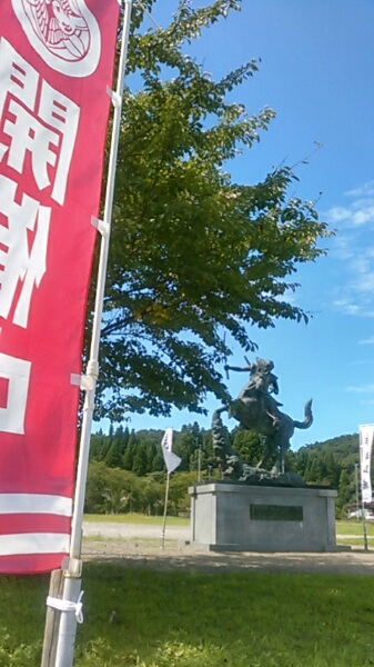 「第12回大会は10月7日(日)!謙信公が春日山城跡!我らが本陣、上越市埋蔵文化財センターの前は60kmの部のコースに…。中学生をはじめ多くの縁の下の力持ちが支える゛くびき野!拙者も元気な笑顔で応援いたしまする~」