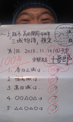 〜来る11月10日(日)、第1回「高田開府四00年『三城物語』検定」開催予定〜とのことにござりまする〜