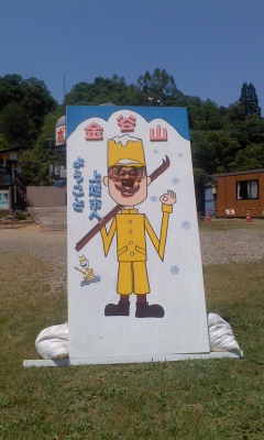「スキー場の斜面を利用したスーパーボブスレーなるお楽しみ場には、係のみなさまお手製、顔出しパネル〜が登場っ!」