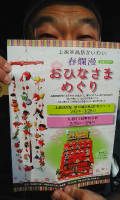 さあっ、我らが上越妙高駅は一足早く春!青竹もいいです。地元のみなさんが手作りの吊し雛も、おひなさまいっぱいです〜十吾郎(礼)