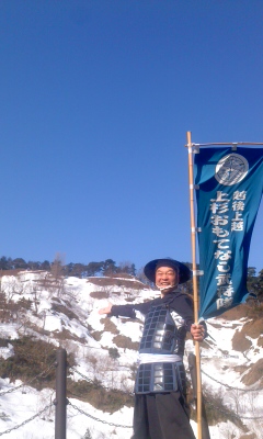 十「お館様の居城¨春日山の麓、大手道などでは、西洋かんじき¨スノーシューを楽しむ方々がいる一方、ランニングで汗するみなさまも…。三寒四温の言葉もありまするが、まだまだ油断大敵!気温の変化に注意しながら¨春¨を待ちたいものですっ!」
