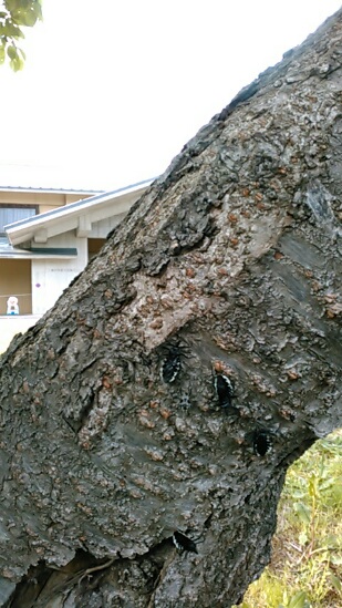 ※昨日の夕方、閉館作業中でした。ご地元の方に声を掛けられ見ると、我らが本陣前の桜の木に怪しき生き物が…。か、カメムシの仲間か!♪ぞわぞわ、いっぱいおりました~!十吾郎(礼)