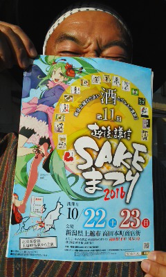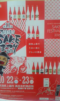 「戯言はさておき(汗)、回を重ねて、歴史を重ねて、それぞれ大注目される我らが¨ふるさと越後は新潟県上越市に無くてはならない取り組みです。SAKEまつりは、今年も高田城下は本町通りが歩行者天国となり、おとなり妙高の蔵元さまも勢揃い、日本酒、ワイン、地ビール、そして、どぶろくを、ご当地ならではの食と共に楽しめる二日間にござりまする。いまから心と身体の準備を整えていただきたいです…。もちろん、このような大きな催し事だけでなく、昨日¨紹介させていただきました¨日常もお楽しみいただきたいです。あっ、合わせて、あれもこれも、いただき、いただきまする〜」