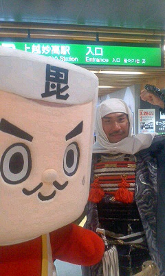 『口軽足軽〜!先日は、開業1周年を迎えた上越妙高駅で、お館様に、さらには、上越忠義隊けんけんずの謙信くん等にお仕えし、北陸新幹線ご利用のお客様をお出迎えしていた際、海外からスキーにいらした御家族様に、何やら流暢な英語を使って笑いを誘っていたようだね〜!なれば、ここで、やって聞かせて見せてくれ〜(笑)』