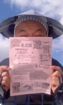 十「我らが上越では、明日(日)名立区で¨名立遊雪まつり¨が行われます。上越の最高峰に掛けての¨めざせ不動山1430¨は道具を使わずに雪を積み上げ高さを競うもの!他にも¨雪だるまコンテスト¨や¨スリッパ飛ばし大会¨など楽しき催しもあるようですっ!」