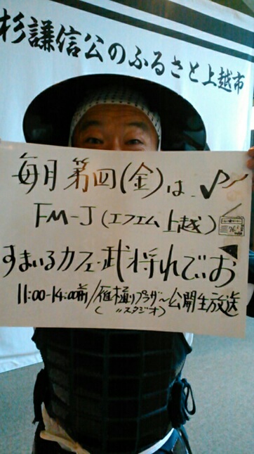 ※3月の最終金曜日です。プレミアム・フライデー!そして、第4金曜日です。FMーJ(エフエム上越)・すまいるカフェ・武将れでぃお!11時から14時前まで、城下町高田の雁木通りプラザで公開生放送です…。公開、こうかい、後悔せぬよう全力疾走で参りまする。本日、最終回です~(涙)!十吾郎(礼)