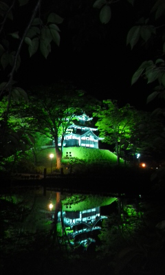 『平成の世に復元された高田城三重櫓のライトアップ!高田公園の街灯!夜ならではの蓮を見に、またこの夏も毎夜繰り出すのか〜(苦笑)』