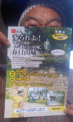 十「さて、9月から再び¨観光ボランティアガイドさんによる春日山城跡めぐり(案内)が始まっています。中腹に立つ¨シンボルなる¨謙信公銅像前広場を出立、10月末までの土曜、日曜、祝日の10時から一時間半ほどです。初めての本丸攻めに(汗)、何度も登城されている方にも¨新たな発見があるかと思いまする。」
