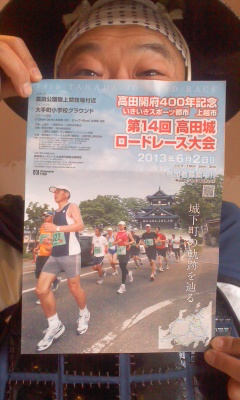 「その5月2日が申し込み締め切りになっておりまする高田城ロードレース大会が今年もやって来ます。先日は、我らも昨年お世話になりました米山山麓ロードレース大会が雪降る中での開催だったようですが、これからは走るに持って来い〜の季節!」