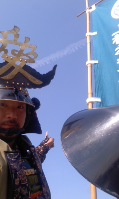 次に青空の飛行機雲の下の兼続公と十吾郎様関連。
