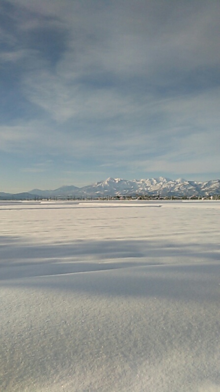 ※謙信公が春日山城跡から頸城平野の北東に米山さん、南に妙高山…。晴れ渡った日は雪山が美しいです~!十吾郎(礼)