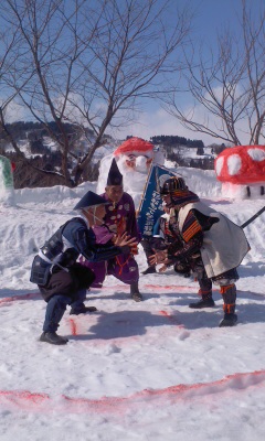 十吾郎「そして、雪上相撲〜!行司さまからも来ていただき、ありがたかったです…。兼続様〜次は「早飲み対決」に参りまするっ!拙者、牛乳の早飲みは負けませぬ〜」