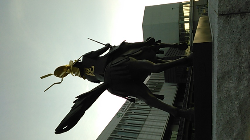 「謙信公銅像!春日山の麓、我らが本陣、上越市埋蔵文化財センターの前をはじめ、北陸新幹線は我らが上越妙高駅の東口、そして、高田城下は、よ、夜の繁華街近く、郵便受けにも鎮座されている゛馬上謙信公銅像巡りもぜひ~(汗)!」