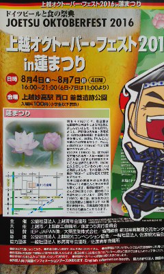 十「あっ、上越妙高駅と言えば、女武者隊まつえ隊長が武録で紹介されていた、上越妙高駅は同じく西口の前に広がる、弥生時代後期からの暮らし跡¨釜蓋遺跡公園の芝生広場で4日(木)から立秋となる7日(日)までの四日間、毎夏恒例の¨上越オクトーバー・フェストin蓮まつりが、東洋一の蓮と称される高田城址は高田公園から会場を移しての開催となりまする…。あれこれあると朝も昼も夜も¨空き(あき)無しです〜」