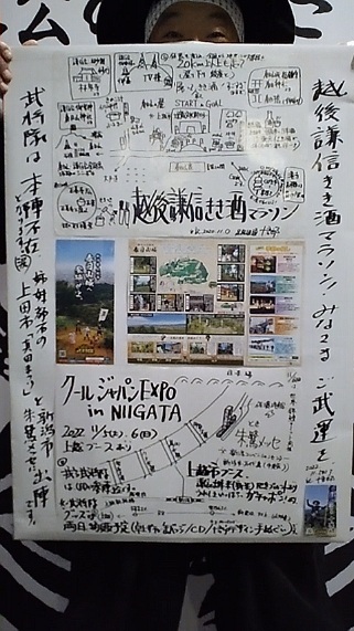 「同じく7日までは、教育・文化週間!文化財保護強調週間!何だとか…。まさに、我らが本陣!謙信公が春日山城跡!春日山の麓!無料の企画展!謙信公と春日山城展゛開催中の上越市埋蔵文化財センターです。本日は、三年ぶりに本格開催!大感動の゛越後謙信きき酒マラソン!本陣に武将隊は不在ですが(涙)、ご武運をです~(歓喜)!」