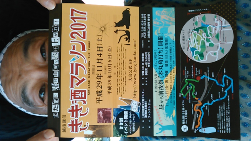 「11月3日、文化の日!そして、4日、5日と世は三連休です!4日(土)は第3回を迎える゛越後謙信きき酒マラソン大開催~!我らが本陣を出立し、謙信公が春日山城跡を攻めまくり、城下を巡って20km以上も走りきった後に、上越・妙高の地酒をきき酒するという果敢な大会です!お出掛け日和のお天気を願いつつ、さわぎ(あちこち巡り)ましょうぞ~」