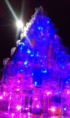 「(追記)お星さまに願いを…。鵜の浜温泉のイルミネーション〜は大潟区の冬の風物詩です。もう一つ、犀潟駅前も恒例のペットボトルツリーが…。こちらも地元の小学生さんが援軍に駆け付け作ったようです〜」