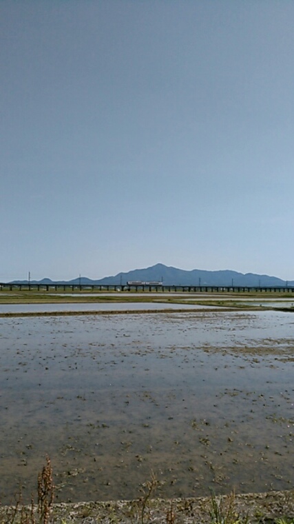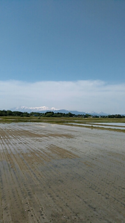 「王国の米!我らがふるさと越後は新潟県上越市の田んぼにも水が入り田植えまっただ中です!青蛙が元気です~」