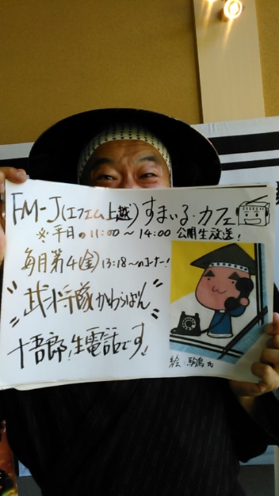 ※秋の全国交通安全運動実施中です。本日は、9月の第4金曜日です!FMーJ(エフエム上越)すまいるカフェ!13時15分過ぎからのコーナーは゛武将隊かわらばん!鉄馬運転中に聞いてくださる方も安全運転第一義で~!十吾郎(礼)
