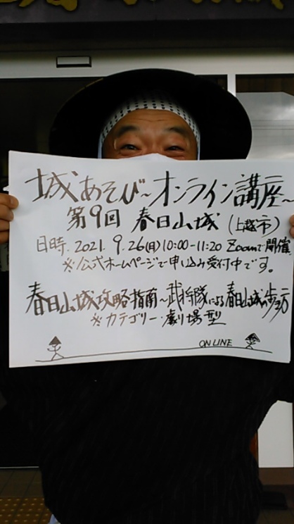 「実は、この話題も出したいと思っています。来る26日(日)の10時から…。城あそび~オンライン講座~第9回春日山城!!ま、まだ準備は整っていませぬ(が)、楽しみです~(汗)!」