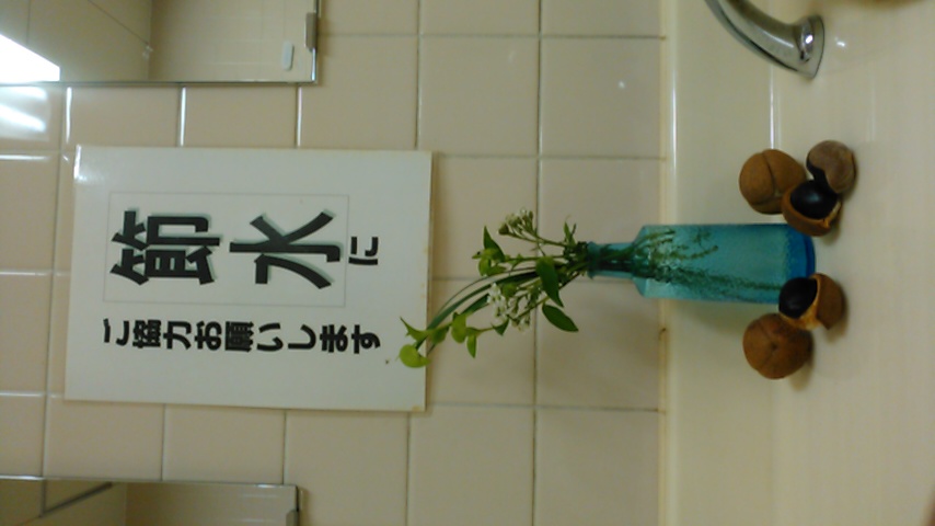 「まさに、写真映え~するような゛お手洗いが全国各地にあるようですな~!我らがふるさと越後は新潟県上越市!この拙者が体感し、あ~いいな~と思うお手洗いは、上越のお土産物が揃いし上越観光物産センターです!季節に合わせ、手洗い場にそっと野の花が生けられています(画像は先月の栃の実です)。まさに、義の心!あったかい気持ちは、ほんに癒されまするな~」