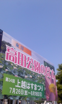 「高田城外堀、西堀橋近くでは、18日までの土・日曜には午前中ボランティアガイドさまによる案内があり、さらにお盆期間を加え、お館様やレルヒさんグッズ〜はじめ、うんまぃもんの物産展もあるようですっ!」
