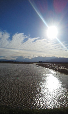 十「秋の稲刈りが終わって直ぐ稲藁をすきこむ耕うん作業をしたり、水をはった状態で冬を越す冬期湛水など、よりうんまくて、求められて、人に優しい米づくりを目指し様々な農法が行われています。北に霊峰¨米山さんを、南に妙高山を望む我らが頸城平野、日本海沿いは雪が少ないため¨冬水田んぼは厳冬期も渡り鳥さんの餌場に…。※白鳥さん〜!平場にも雪の予報が出て来ました。気を付けて参りましょうぞ〜」