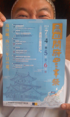 「いよいよ迫りし7月6日、「高田開府四百年祭」で行われる「五郎八姫のお興し入れ行列」に、地元の新婚さん〜が選ばれたとのことです。みなさまに祝福されての「婚礼の儀」さぞや素敵にござりまする〜」