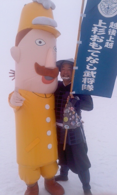 十「一本杖のスキー術を伝えしオーストリア・ハンガリー帝国¨レルヒ少佐さまを基に¨元祖スキー天国新潟¨宣伝隊長、ゆるキャラ¨レルヒさんとなって各地で大活躍!先日はお隣¨妙高のスキー場で、遠く台湾からの高校生さま方をお出迎えされていました。」