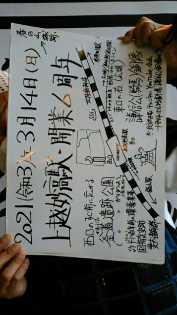 「さ、さておき、西口の前には、弥生時代後期から古墳時代にかけた環濠集落跡の釜蓋遺跡公園・無料の釜蓋遺跡ガイダンス、東口には、馬上謙信公銅像…。はいっ(2)!我らが上越妙高駅!開業6周年の記念日にござりまする~!2015年3月14日(土)の開業日!そして、前日の様子は、数日前の十吾郎武録を改めて見返して欲しいです。ほんに、ほんに、涙なくては語れませぬ~」