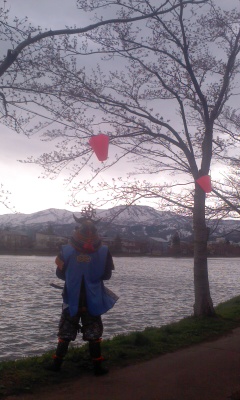 ※画像二枚とも伝わりませぬが(汗)、観桜会の高田公園は極楽橋から、紅い橋が架かる西堀沿いから、南堀沿いからも残雪の妙高山は綺麗です。もちろん、南葉高原キャンプ場を有する上越の南葉山の眺めも最高です〜十吾郎(礼)
