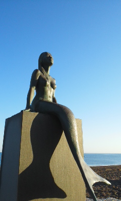 ※直江津「三八の市」の最寄りの駐車場でもある船見公園では¨ハマヒルガオが可愛らしい笑顔で咲いています。人魚像は日本海に平和を祈っているようです…。