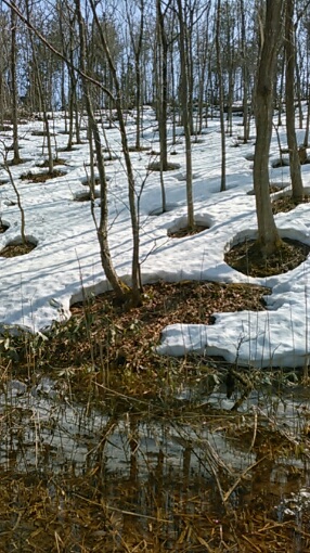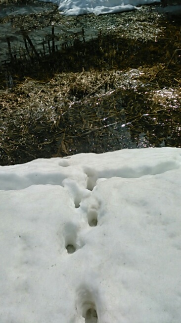 赤蛙の産卵の時期を向かえます。はたまた、バナナのような形の卵はクロサンショウウオ!カモシカと思われる足跡も…。生きもの探しも楽しいですぞ~!十吾郎(礼)