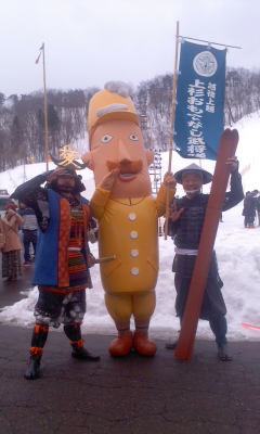 十「今年は¨レルヒクーポン¨なるもので嬉しさ倍増〜!一本杖スキーの講習会、恒例¨レルヒ検定○×クイズ、熱くなります雪中宝探し、初参戦¨かっこいい痛板、スノーモービルなる憧れの鉄馬にまたがたい〜!あっ!元祖スキー天国新潟¨宣伝隊長¨レルヒさんと、どっちがお客さまに¨写真撮ってください〜と言われるか競争して来なくては〜」