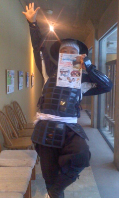 十「検定終了後には、我らが「おもてなし演武」です…。此度の褒美付き催しは、し、新企画ですっ!二枚目の画像がヒント〜なるものですが、お分かりになりまするか〜!。なお、先日お世話になりました高田本町商店街PRアイドル「がんぎっこ」さまのステージ〜は14時からですっ!」